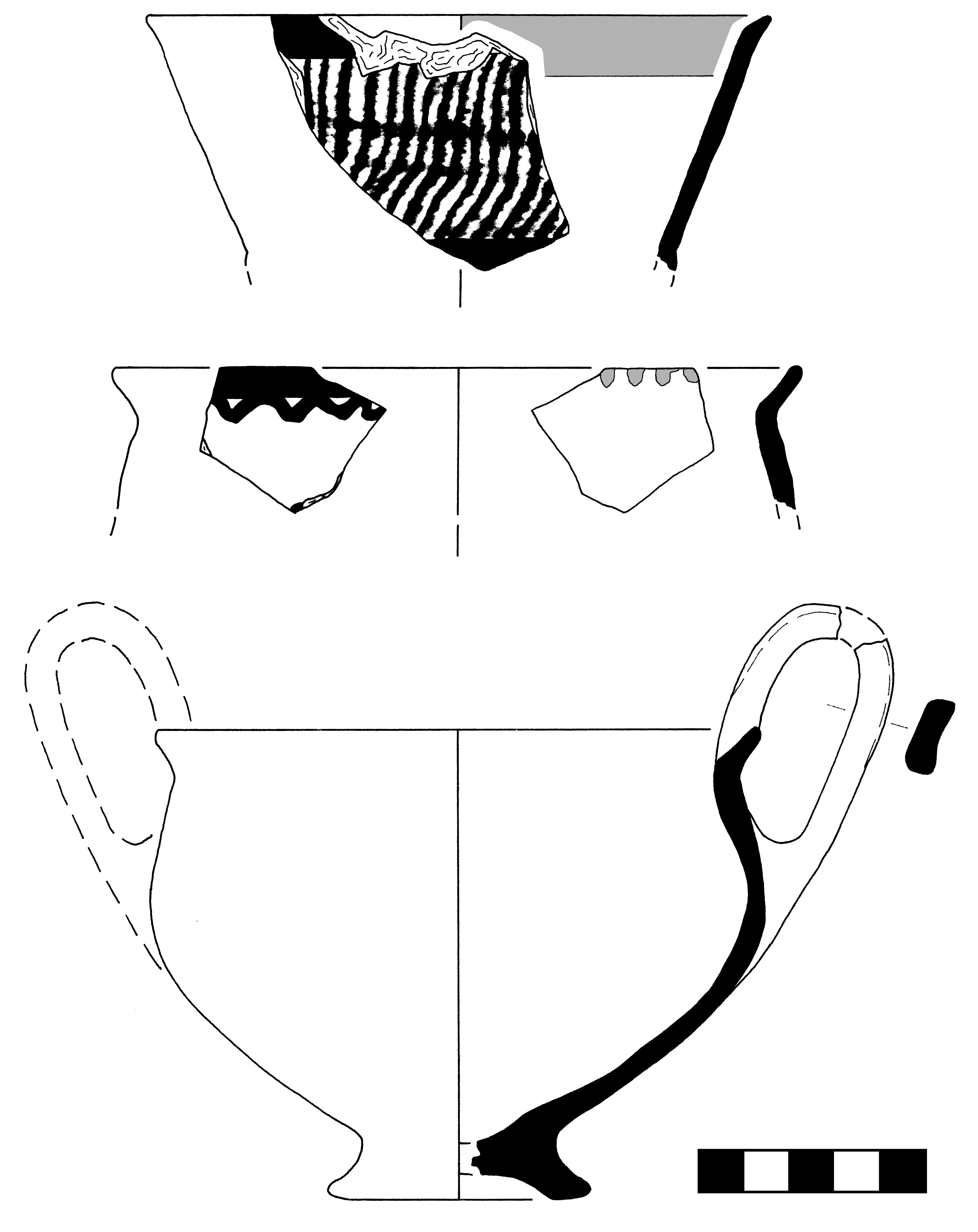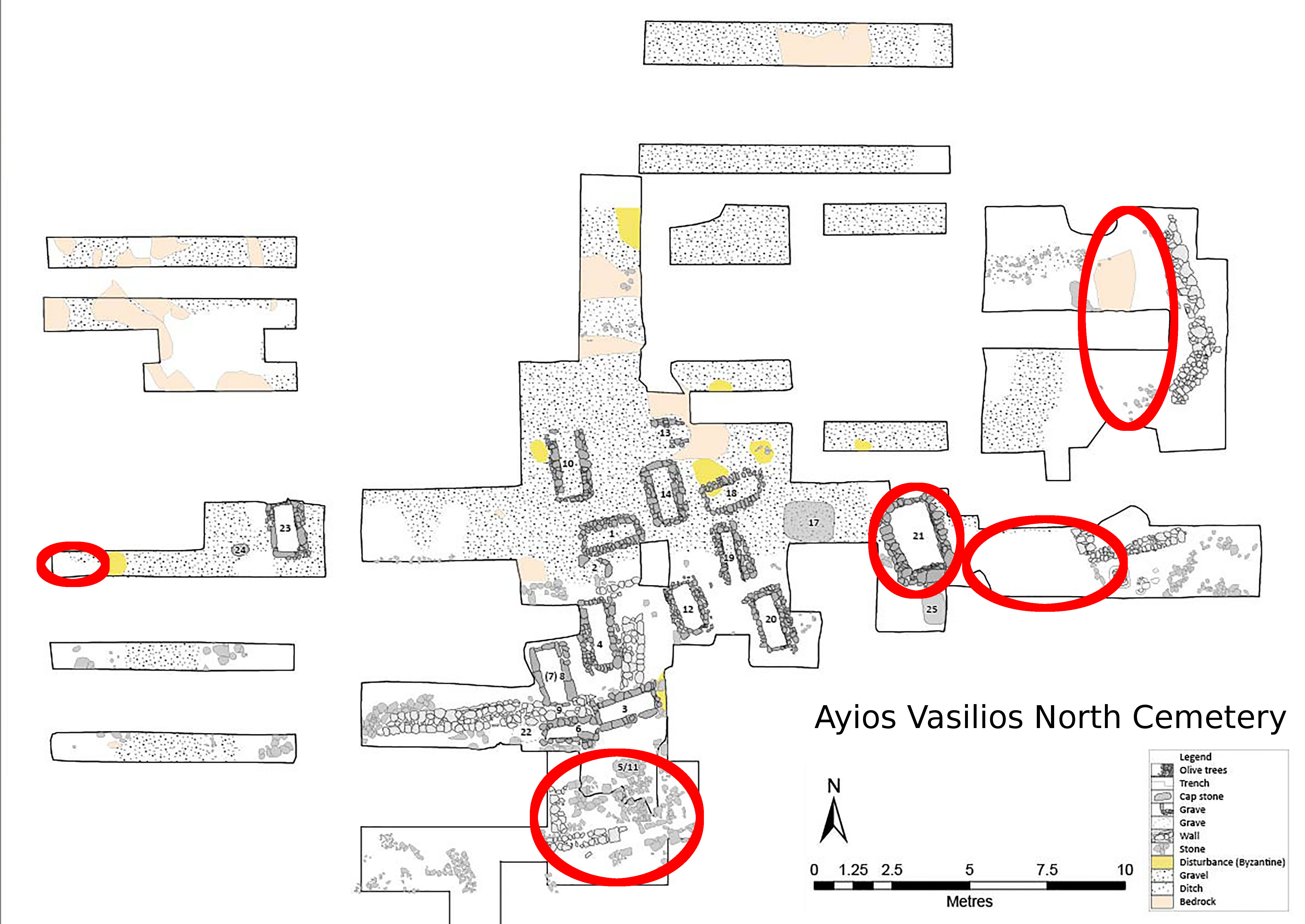 Plan of the Ayios Vasilios North Cemetery and locations of studied deposits (plan by Irene Koulogeorgiou and Gary Nobles) Early Mycenaean vessel fragments from the North Cemetery area (drawing by Vasco Hachtmann)