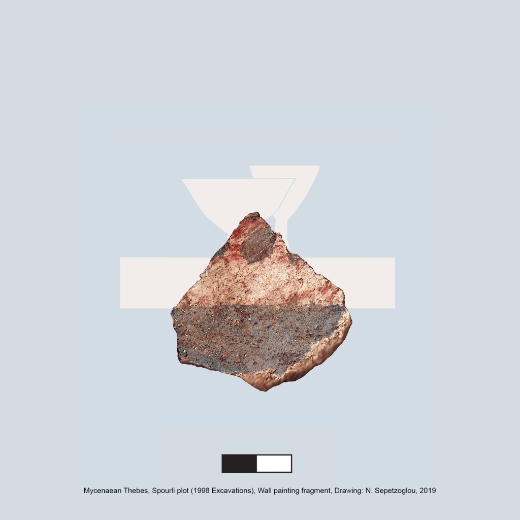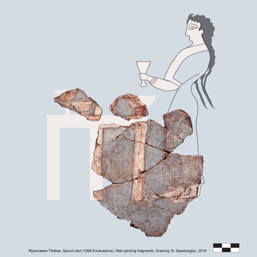 Although the wall painting assemblage from Spourlis Plot was extremely fragmented, research revealed the wealth of the local artistic repertoire, with images extremely rare, if not unique, within the world of Late Bronze Age Aegean arts. For example, a scene in miniature scale was identified depicting a woman standing in front of a desk with various drinking cups visible, perhaps as part of a ceremony. It can be concluded that the artists at Thebes had the skills to create complex narrative scenes, as in the majority of the mainland Mycenaean centres.
